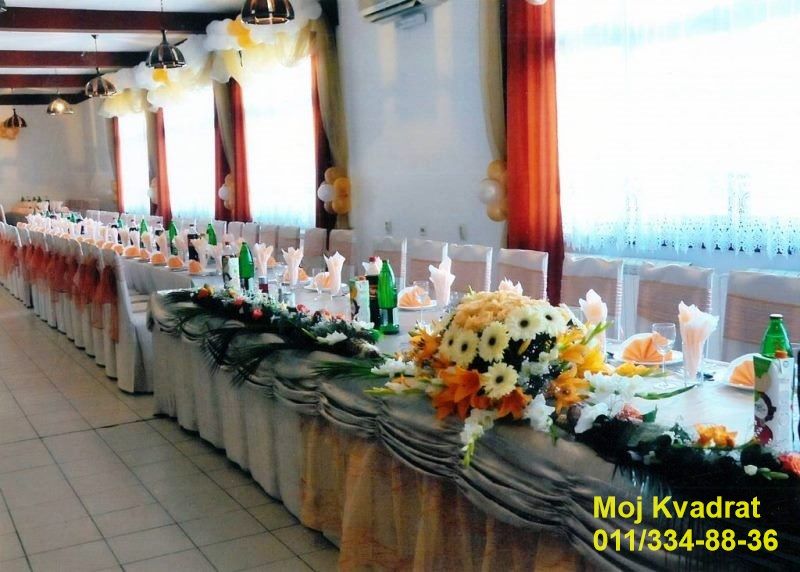U restoranu postoje dva svečana salona, pojedinačnih kapaciteta od 220 mesta i 80 mesta koja se, po potrebi, efikasno spajaju u jedinstvenu celinu.