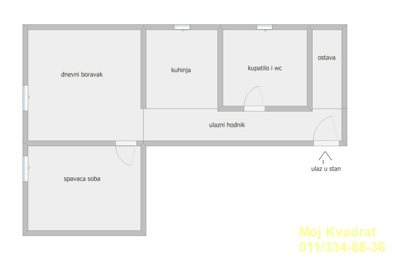 Sastoji se ulaznog hodnika i prostorija koje su raspoređene u nizu. Ima veliku kuhinju, dnevni boravak sa trpezarijom, komfornu spavaću sobu, kupatilo i prostoriju za veš mašinu i bojler.