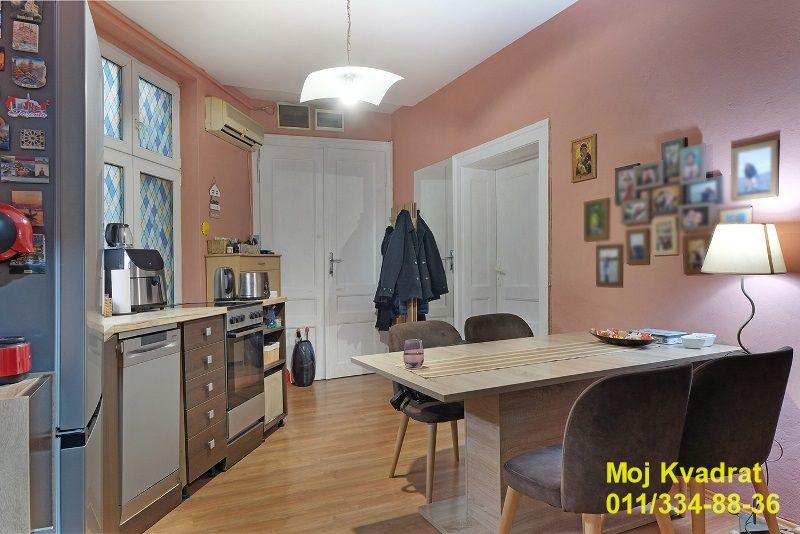 U ponudi salonski stan sa visinom plafona od 3m, u neposrednoj blizini Skadarlije. Renoviran je pre dve godine. Nalazi se na drugom spratu u mirnoj, dvorišnoj zgradi sa po dva stana na spratu. Trostrano orijentisan.